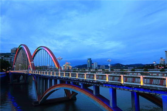 ▲梅城一角。图为德龙大桥